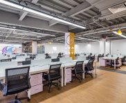 科技公司精装,正对电梯,户型方正,目前房子的格局是7个到顶房间,分别是:会议室(容纳8人)、财务室、经理室、洽谈间以及靠窗气派十足的老板间,工位办公区目前容纳200人办公,带窗采光,视野很棒,现状交付,适合科技、传媒、咨询外资等公司强势入驻,随时可看。