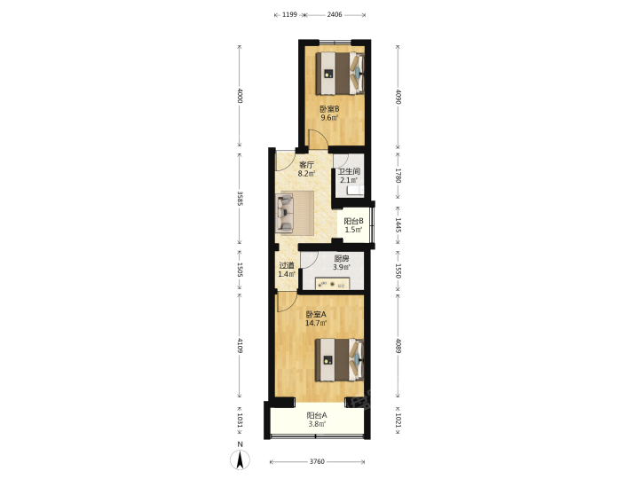 房屋类型:2室1厅1卫